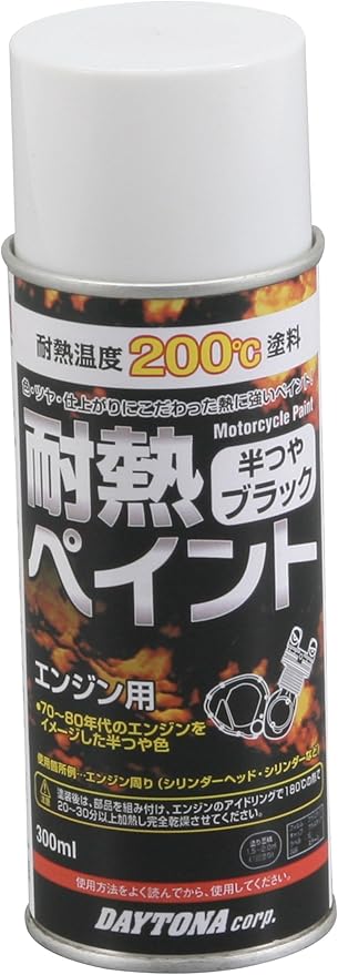 デイトナ(Daytona) バイク用 缶スプレー 300ml 耐熱ペイント エンジン用 耐熱温度200度 半つやブラック 75611