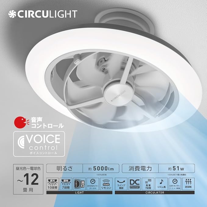 天井から光と風を届けるサーキュライトから、音声認識機能を搭載した最新モデルが登場しました。リモコンを使わず声で主要な機能が操作できる。WiFi環境不要ボイスコントロール機能搭載。