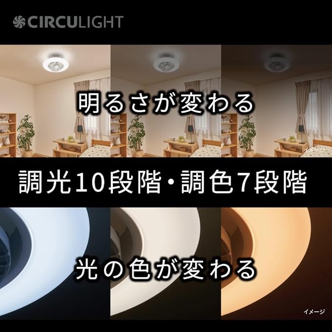 調光10段階 調色7段階 常夜灯2段階 風量7段階 正逆回転切替 スイング機能2段階・回転2段階 リズムオフタイマー