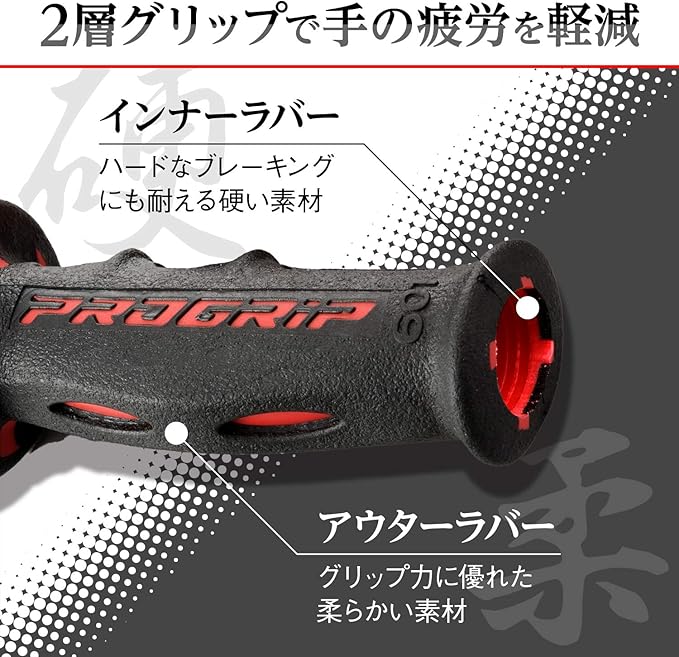 デイトナ(Daytona) PROGRIP(プログリップ) バイク用 グリップ ハンドル径φ22.2用 120mm 耐振ゲル エンド貫通 601タイプ レッド 98024