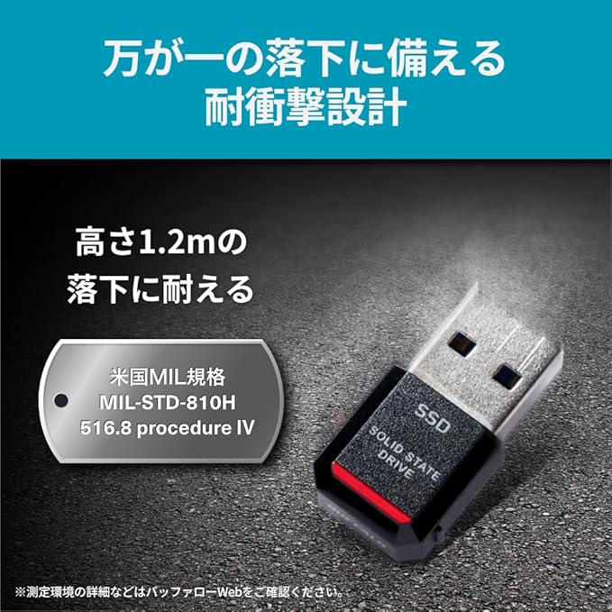 【バッファロー史上最小・最軽量のSSD※】 接続時の飛び出し幅:約17mm、重さ:約4.5gの小型外付けSSDです。※2023年7月時点、バッファロー製外付けSSDの外形寸法/重さを比較。