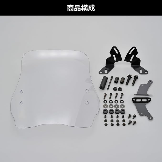 アドレスV125S (10-)[L0/L3]用シールド。空気抵抗による疲労軽減、雨や虫よけに効果があります。シールドは三次元立体成型によるスタイリッシュなデザイン。Φ22.2mmのクランプバーを同梱。スマートフォンホルダーなどのデジモノ装着が可能です。シールドは衝撃に強いポリカーボネイト製。傷や汚れに強いハードコーティング仕様だから、長期に渡ってクリアな視界を確保します。