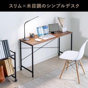 テレワーク、在宅勤務、リビング学習に最適なシンプルデスク。幅120cm、奥行45cmのスリムサイズで温かみのある木目調天板を採用。モニターアームの取り付けや天板下にキャビネットを設置できるパソコンデスク。ブラウン。