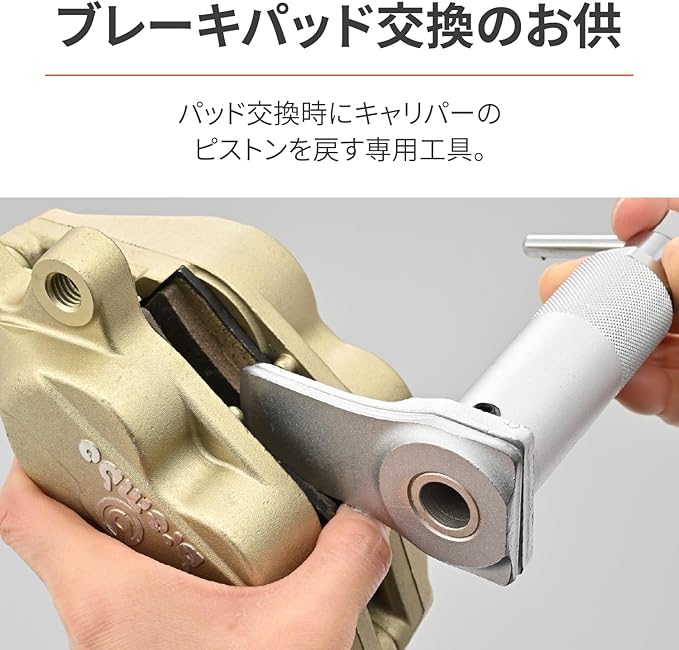 ブレーキパッド交換時にキャリパーピストンを押し戻すための専用工具。