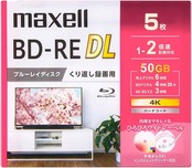 マクセル 録画用ブルーレイディスク BD-RE DL ひろびろワイドレーベルディスク(1~2倍速記録対応) BEV50WPG.5S