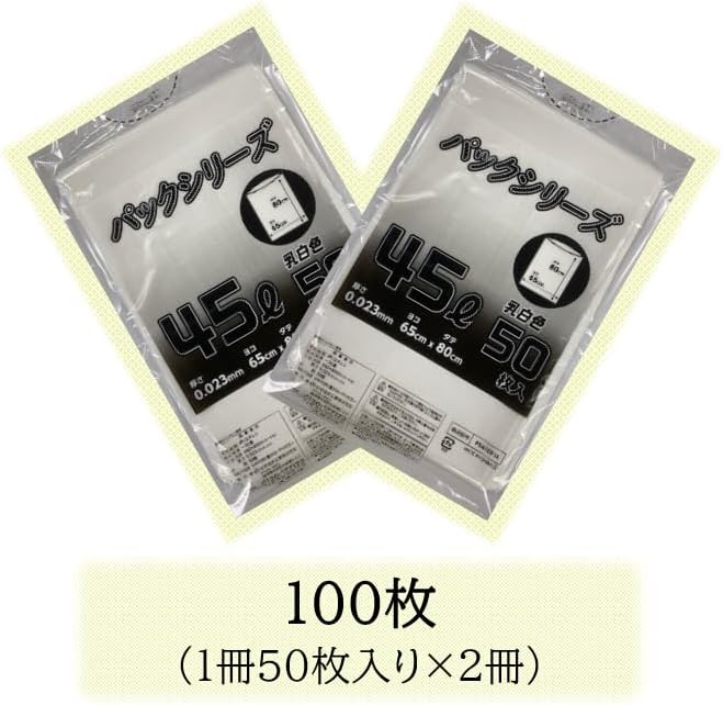 【限定商品】 日本技研工業 ゴミ袋 ポリ袋 45L 半透明 100枚 0.023mm厚 縦80 x 横65cm 50枚x2冊