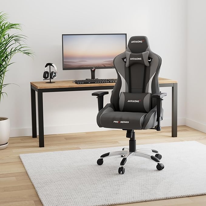 AKRacing ゲーミングチェア デスクチェア 勉強椅子 学習椅子 グレー 灰 Pro-X V2 高耐久PUレザー 180度リクライニング 在宅 リモート 5年保証