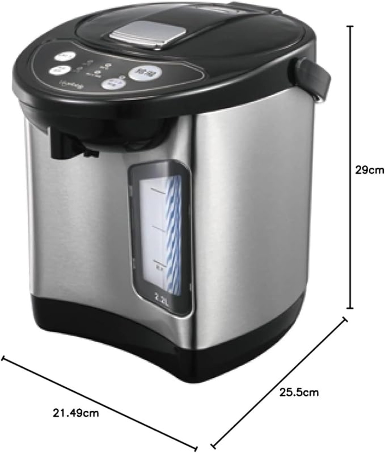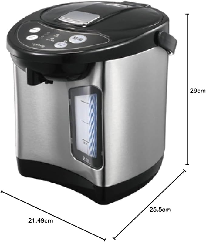 ・温度保温設定機能:98度/90度/70度 ・電源:AC100V 50/60Hz ・消費電力:650W ・外形寸法:約25.5 21.5 29cm ・コード長:約1.6m ・重量:約1.89kg ・最大容量:2.2L ・付属品:マグネットプラグコード 1
