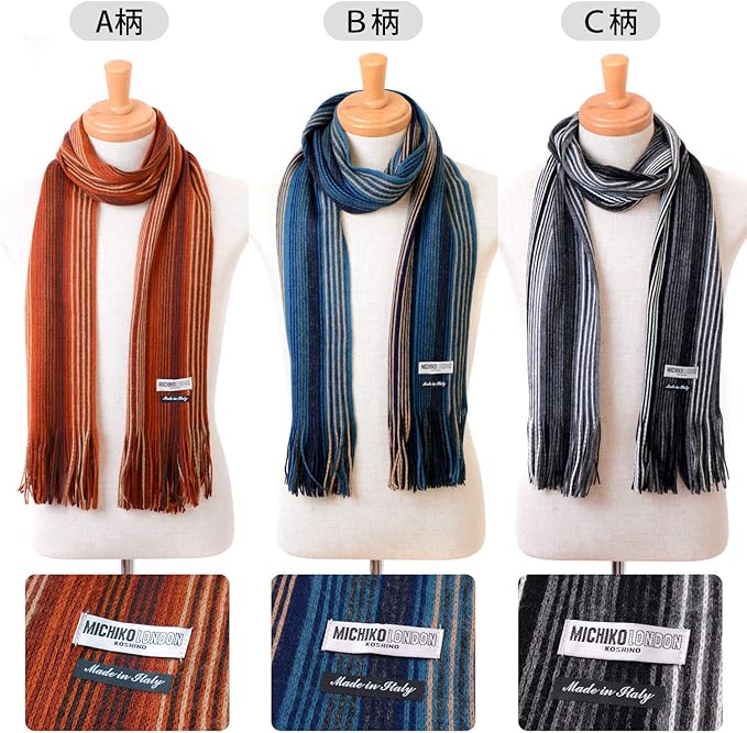 [ミチコロンドン] イタリア製 限定商品マフラー 男女兼用 ラッセル マルチストライプ