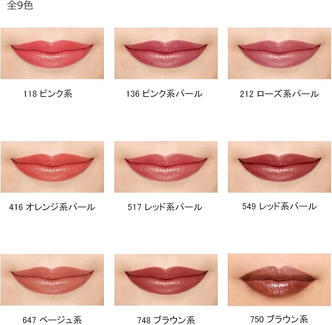 着色成分 マイカ 適量、酸化チタン 適量、酸化鉄 適量、黄5 適量、赤202 適量、硫酸Ba 適量、シリカ 適量、青1 適量 油性エモリエント成分 オクチルドデカノール 11.50%、トリエチルヘキサノイン 10.50%、パラフィン 8.93%、ヘキシルデカノール 8.40%、リンゴ酸ジイソステアリル 6.30%、マイクロクリスタリンワックス 4.21%、ミツロウ 2.00%、カルナウバロウ 1.90%、マカデミア種子油 1.00% 保湿成分 ヒアルロン酸Na 0.20% 表面処理剤 水酸化Al 適量 製品の酸化防止剤 トコフェロール 0.02% 成分の酸化防止剤 BHT 適量 基剤 ヒマシ油 ※全量を100%とする