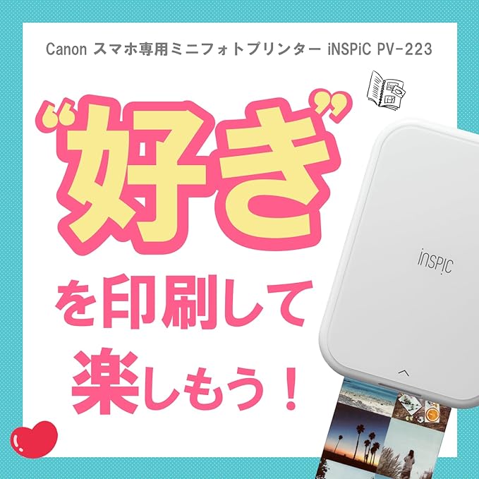 キヤノン Canon スマホ専用ミニフォトプリンター iNSPiC PV-223-PK 写真用 ピンク フルカラー インク不要