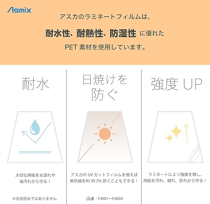 アスカ ラミネートフィルム UV 99.5%カット A3 100ミクロン 100枚入 F4004
