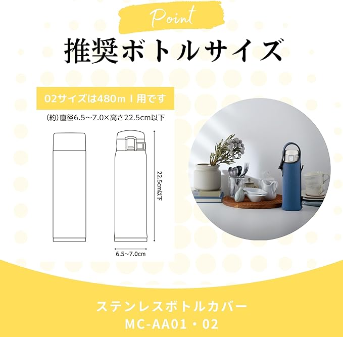 象印マホービン 水筒カバー Mサイズ(480ml用)持ち方3WAY ストレッチ素材 洗濯機洗いOK ステンレスボトルカバー ベージュ MC-AA02-CA