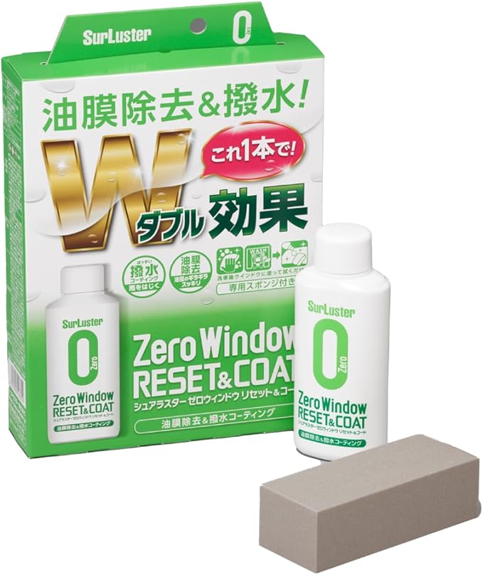 SurLuster(シュアラスター) ゼロウィンドウ リセット&コート 油膜 クリーナー 撥水 コーティング 塗りこみタイプ ガラス撥水剤 窓 フロントガラス サイドミラー 付属スポンジ付き 洗車 S-131