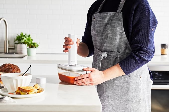 専用のポンプでコンテナ内の空気を抜いて真空保存できるコンテナ。食材の酸化を防いで、鮮度をキープしながら保存します。