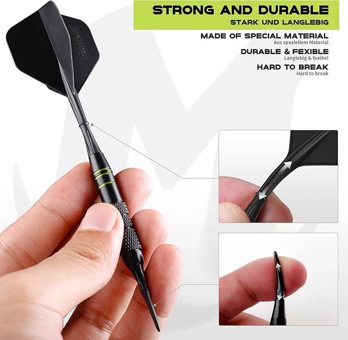 18gの軽量で柔軟な3本のダーツと30本の交換用ソフトチップが付属しています。マイダーツ