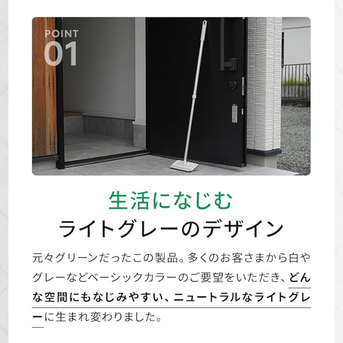 【腰を曲げずにラクラクお掃除】柄付きなので、腰に負担をかけずにラクな姿勢でお掃除できます。