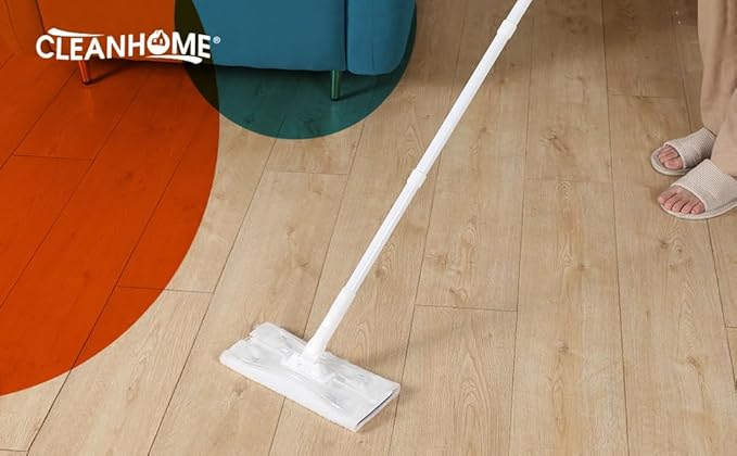 CLEANHOME フロアワイパー 本体 フローリングワイパー フロアモップ 拭き掃除 4段ポール 長さ調節 40cm-120cm 雑巾ワイパー 水拭きモップ 乾湿両用 ベランダ 玄関 床 窓 フロア 掃除道具 ドライシート10枚入 (ホワイト)