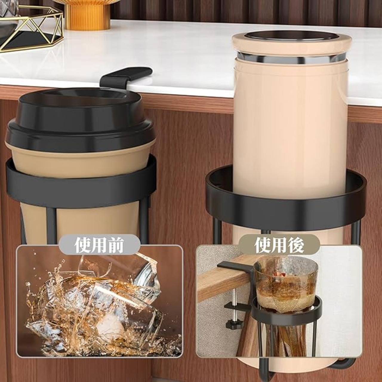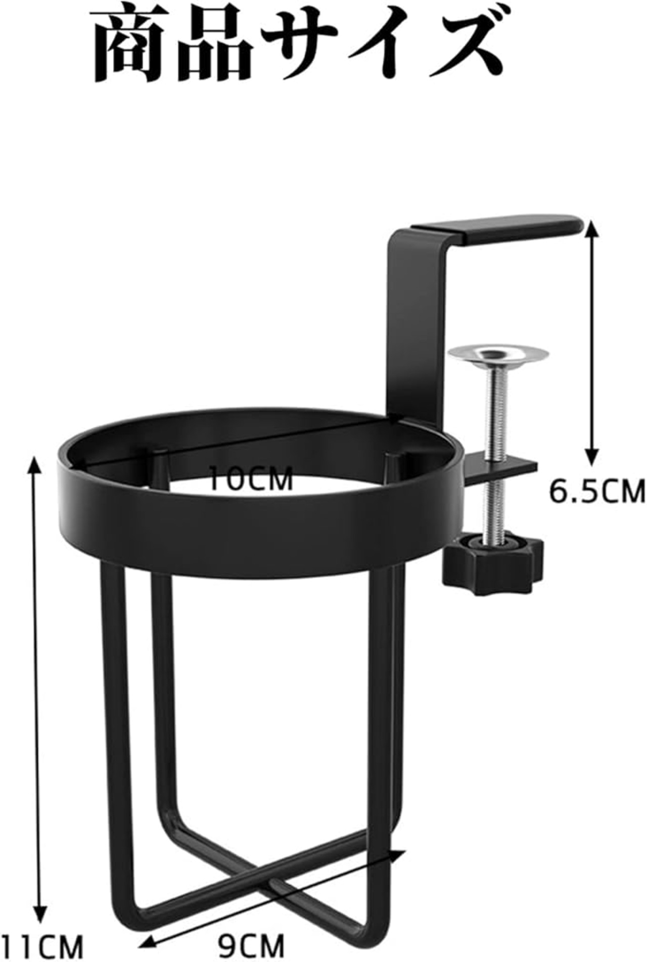 kasanidika ドリンクホルダー カップ ホルダー ドリンク コップ マグカップ用 ホルダー コップスタンド デスクサイドホルダー デスク クランプ式 180度回転収納 調整可能 取り付け簡単 ステンレス製 穴あけ不要 多機能 スペース節約 テーブル収納 ブラック