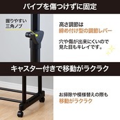 【パイプを傷つけにくい調節レバー】締め付け型調節レバーで、パイプに穴や傷ができにくくなっています。三角形のノブで握りやすくしっかり固定できます。