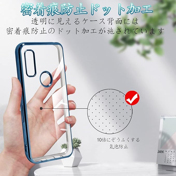 arrows We F-51B ケース クリア FCG01 透明 TPU スマホケース 薄型 軽量 耐衝撃 メッキ加工 ソフトケース 人気 カバー(ブルー)