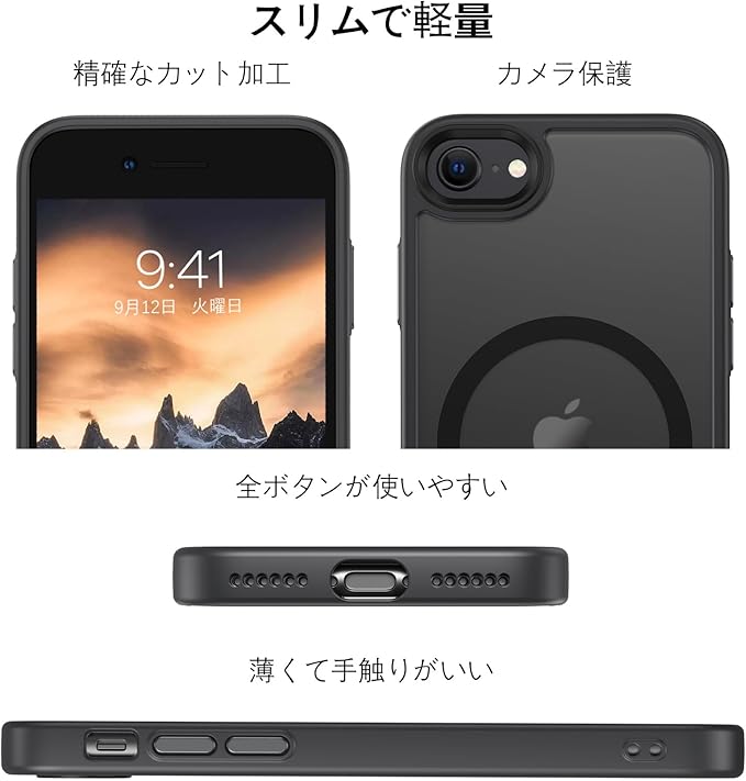 BENTOBEN iPhone SE 第3世代 用/iPhone SE2 / iPhone8 / iPhone7 ケース MagSafe対応 ワイヤレス充電 マット感 半透明 指紋防止 ストラップホール付き レンズ保護 耐衝撃 アイフォン SE3 SE2 8 7 ケース カバー ブラック