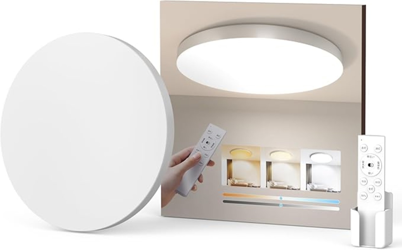 【豆電球常夜灯・記憶機能・定刻消灯】○本格的な豆電球常夜灯(1W):他社の眩しい全体発光式常夜灯と違って、1点だけ発光のため、ちょうどいい感じの暗さで目への刺激がなく、付けまま寝ることに最適です。○進化した記憶機能:他社の記憶機能は常夜灯によって前の設定がリセットされる方が多く、当天井照明器具はいろいろ設定してから常夜灯を使っても、次回点灯時にきちんと常夜灯前の設定を再現しますので、設定がリセットされるため毎日設定し直しの悩みがなくなります!○消灯機能:設定して15/30分後自動的に消灯するため、消し忘れの心配はありません。
