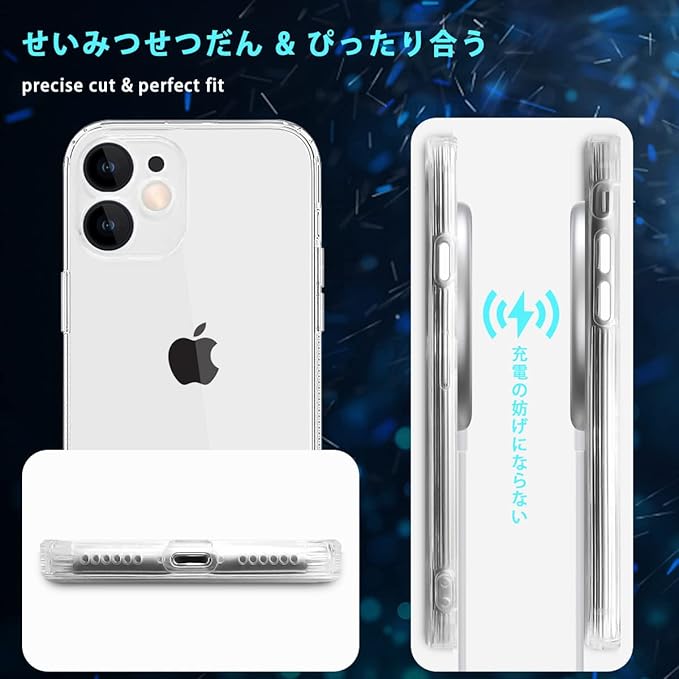 【精密な開口部 - ワイヤレスでの充電】精密に切断加工する,ケースを携帯電話の本体にぴったりフィットさせることができる,ほこりの入り込みを防ぐ。各ボタンは精密設計,押しがきく,縁が柔らかくて取り外しやすい,ワイヤレス充電に対応,ワイヤレス充電時にケースを取り外す必要はない。