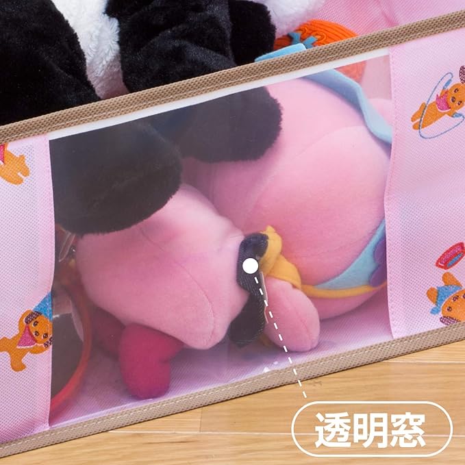 アストロ おもちゃ 収納 箱 袋 ケース ピンク 2個組 中身が見える透明窓付き 小さいお子様でも一人で持てる 軽量 持ち手付 618-52