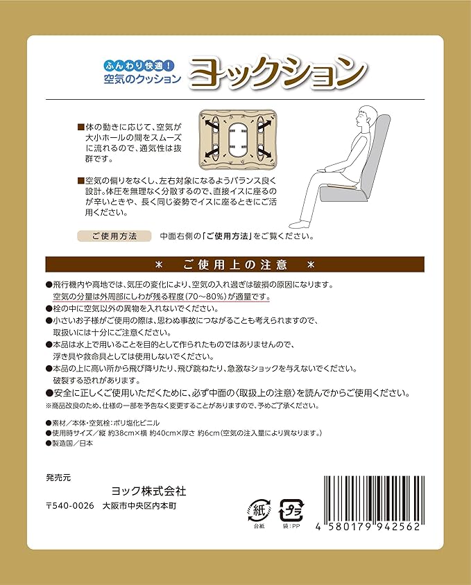 本品はクッションとして作られたものであり、安全用具ではありませんので十分ご理解の上、ご使用ください。