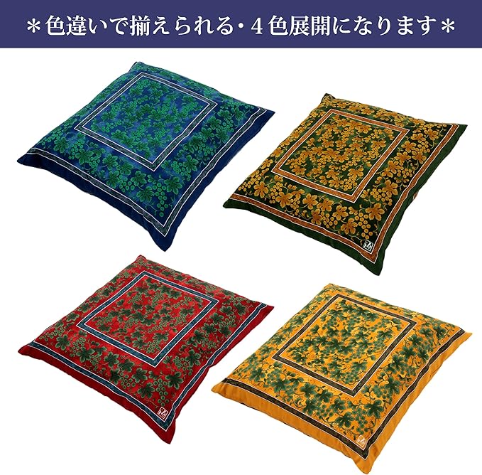 nishikawa 【 西川 】座布団カバー 銘仙判(55X59cm) 洗える 緑彩葡萄絵柄 日本製 ブルー PG02083096
