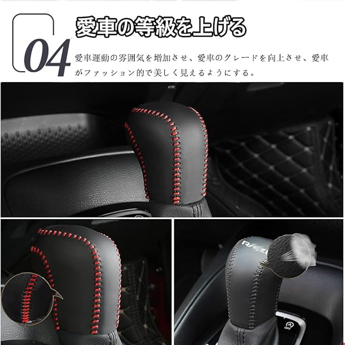 【高級感】:黒+赤ステッチのような凹凸感を出し高級感を醸し出します、シフトノブより目立たせるためのガイドを作成します、スポーティに演出します;使用頻度高いシフトノブに爪などによる傷をもっと防止できます、シフトノブを守ることができます、細部まで上級仕様を実感できます;針糸縫いで取り付けると、取り付けがより強固になります