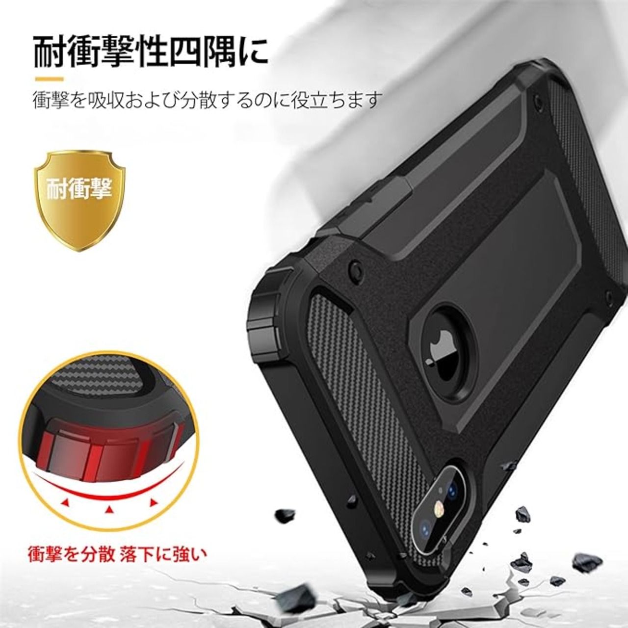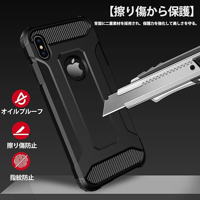 iPhone Xs ケース 衝撃吸収 耐衝撃 スマホカバー TPU+PCバンパー 二重構造 カメラ保護 すり傷防止 落下防止 米軍MIL規格 防塵 指紋防止 アイフォンXS 用 ケース 軽量 薄型 着脱簡単 耐久 アイフォン XS おしゃれ 人気 携帯カバー 黒 SJ77-21