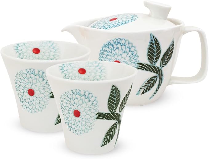 J-kitchens 勲山窯 急須セット S 波佐見焼 日本製 (急須 ペア湯呑み 茶器 セット) 240ml 130ml 1人用 ~ 2人用 茶こし付き ダリア プレミアム
