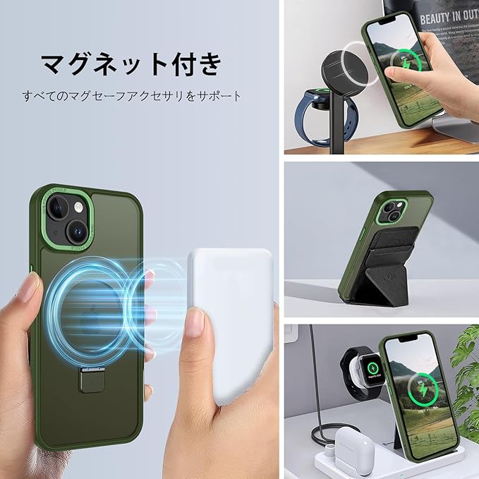 DUEDUE iPhone 13 Mini ケース MagSafe対応 アイフォン13mini ケース マグネット搭載 スタンド機能 120 開閉可能 グリーン 指紋防止 耐衝撃 一体型 薄型 TPUケース 車載ホルダー対応 ワイヤレス充電 全面保護