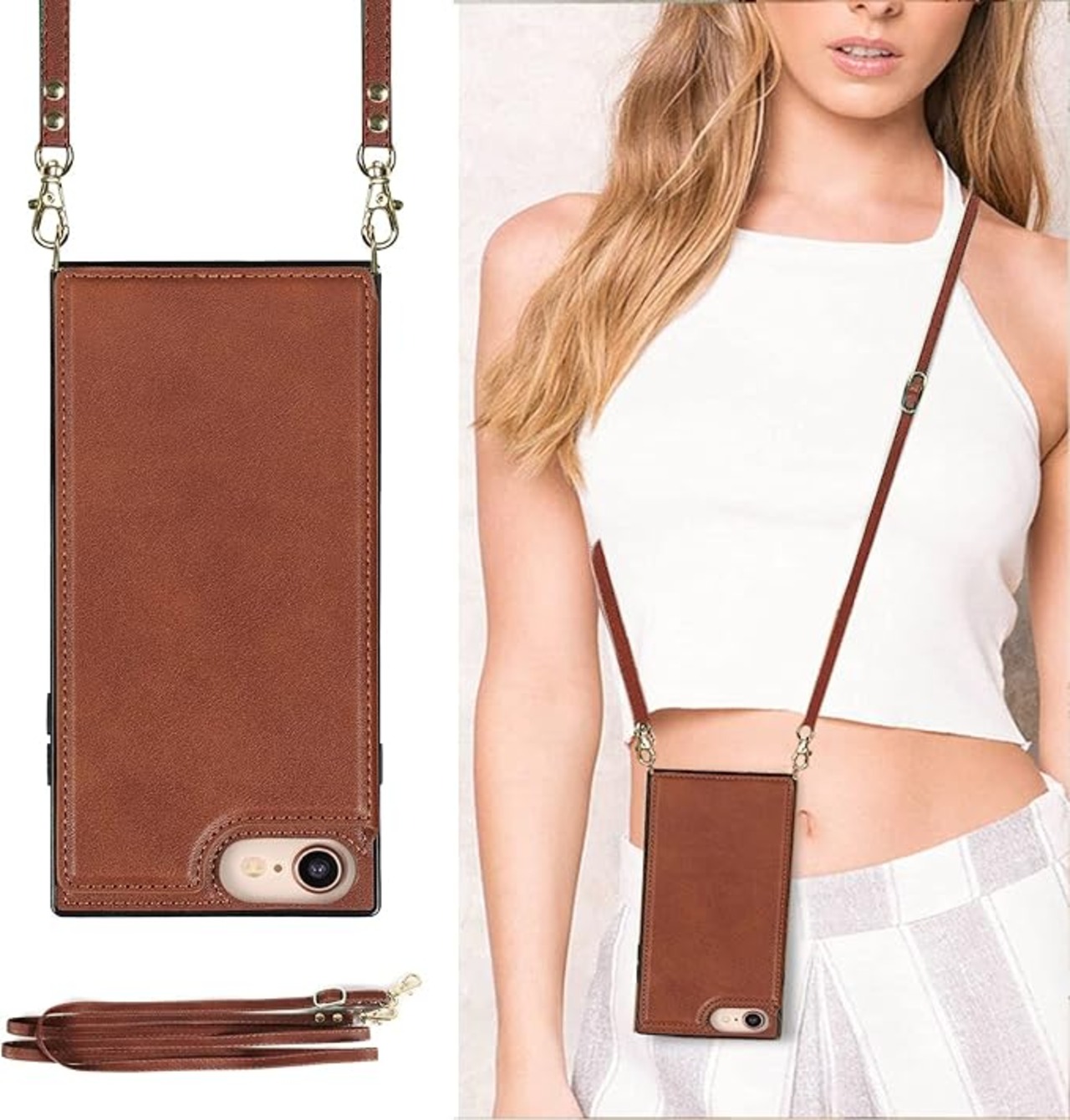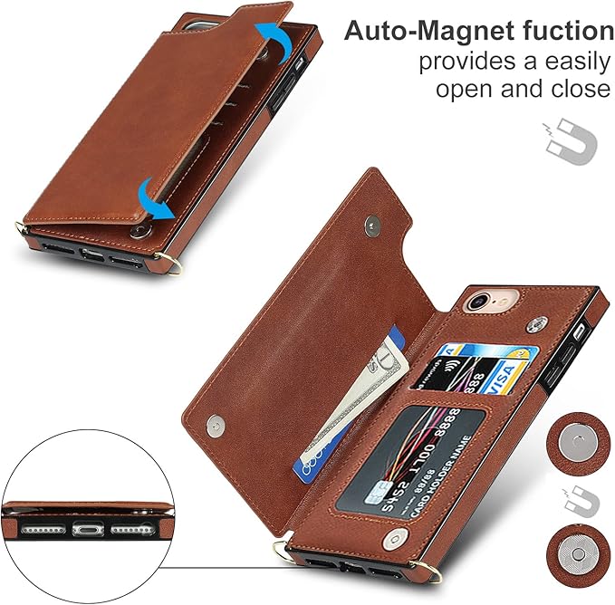 GOKIGIOD 適用 iPhone SE 第2世代 第3世代 7 8 全通用 ケース ショルダー 窓口式 カード入れ スマホケース ストラップ付き アイフォン7 アイフォン8 カバー 手帳型 斜めがけ 可愛い いphoneSE2 いphoneSE3 ショルダーケース 首かけ 肩掛け かわいい おしゃれ RFIDスキミング防止機能 ロング クロスボディ 携帯カバー ブラウン