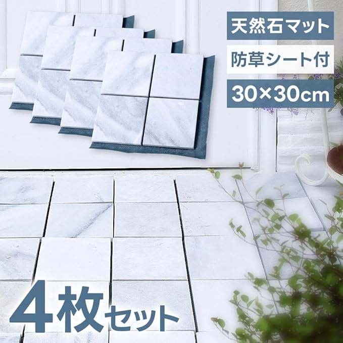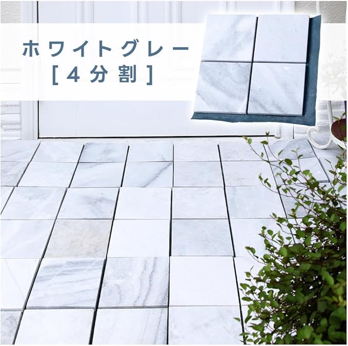 リビングアウト(Living Out) 天然石マット 30 30cm 4枚セット ホワイトグレー/4分割 タイル 石畳 敷石 防草シート 庭石 DIY 洋風 防草マット 雑草対策 ガーデン 敷くだけ 置くだけ