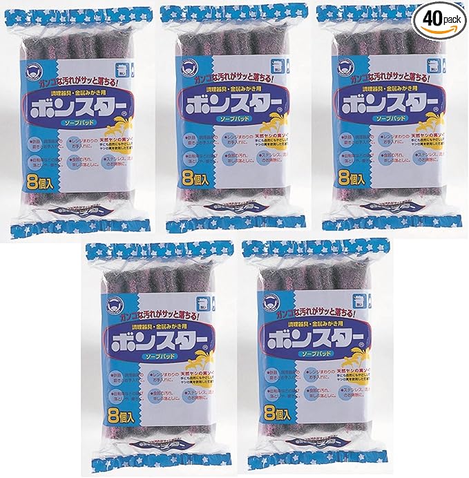 ボンスター 金たわし ソープパッド 8個入り 5個セット 調理器具・金属みがき用 ガンコな汚れがサッと落ちる レンジまわり ステンレス流し台 自転車のサビ落とし 茶しぶ落としにも使用可能