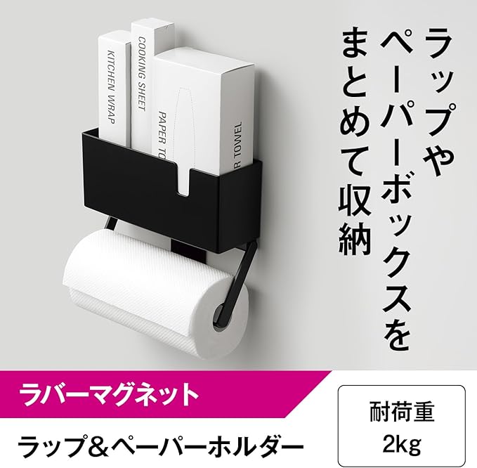 レック ラップ & ペーパーホルダー ブラック (ラバーマグネット) 耐荷重2kg 海外製大型ロールペーパー対応