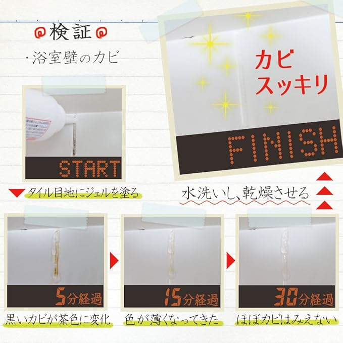 ●激密着ジェルだから垂直面でもたれにくく、頑固なカビも強力に落とします。