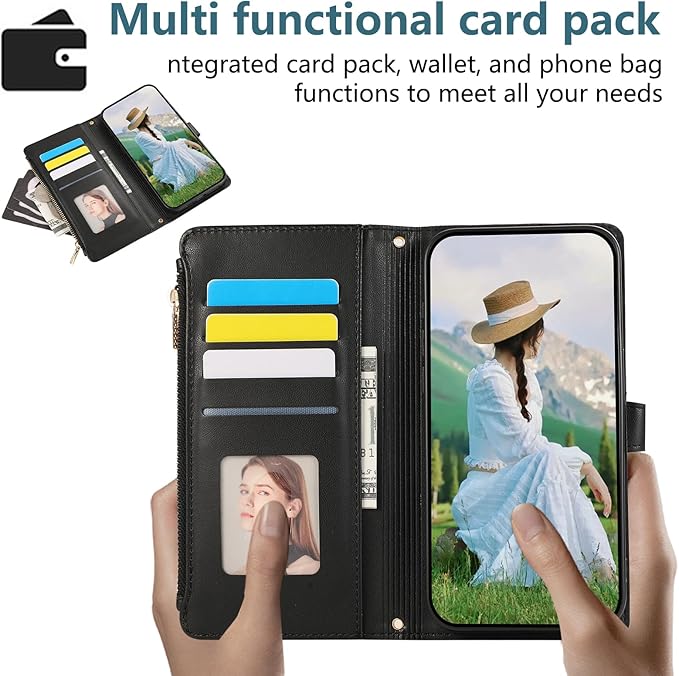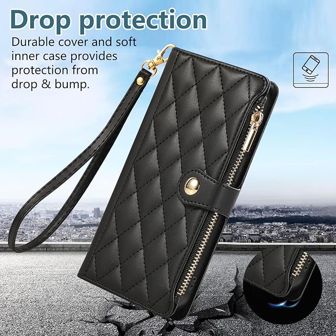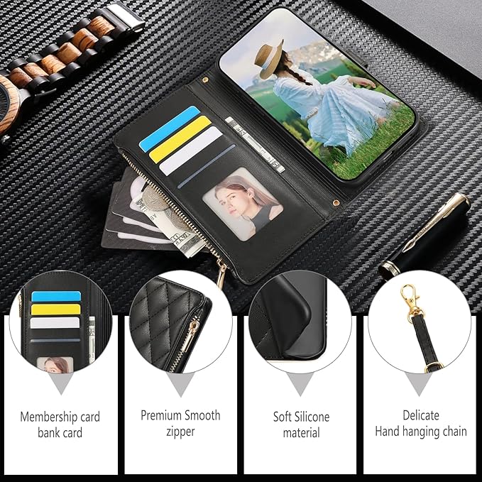 Rosbtib Galaxy A25 5G ケース 手帳型 日本版 SC-53F ケース 財布型 カバー ギャラクシーA25 ケース ファスナー型 小銭入れ docomo SIMフリー対応 ギャラクシーA25ケース 携帯カバー カード収納 Samsung Galaxy A25 スマホケース 刺繍 高級PUレザー 肌触り良い GalaxyA25 ケース マグネット スタンド機能 全面保護(ブラック)