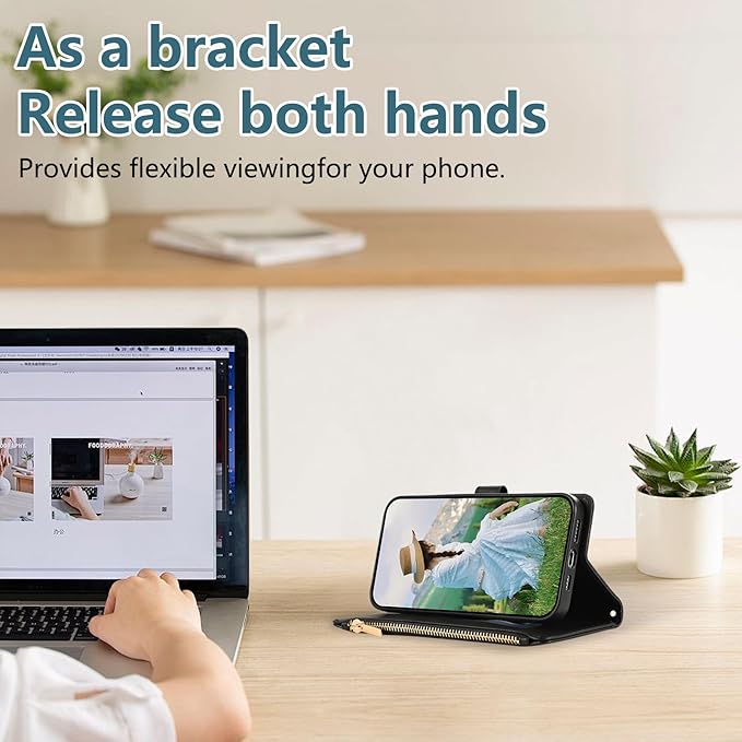 ✅【実用性・機能性を兼ね備え】  ①本体と同色のストラップが付き:ハンドストラップが付いており、両手が自由に使えるので買い物がしやすい。②便利な横置きスタンド機能:手帳型ケースは画面側のカバーを折り返してスマホを自立させられ、お好みの角度に自由に調整可能、動画視聴、ビデオ通話、Web会議などを快適に楽しめる。③マグネット開閉付き:側面のしっかり留まるマグネット開閉式付きは着脱しやすい、携帯電話の落下防止にもなる。