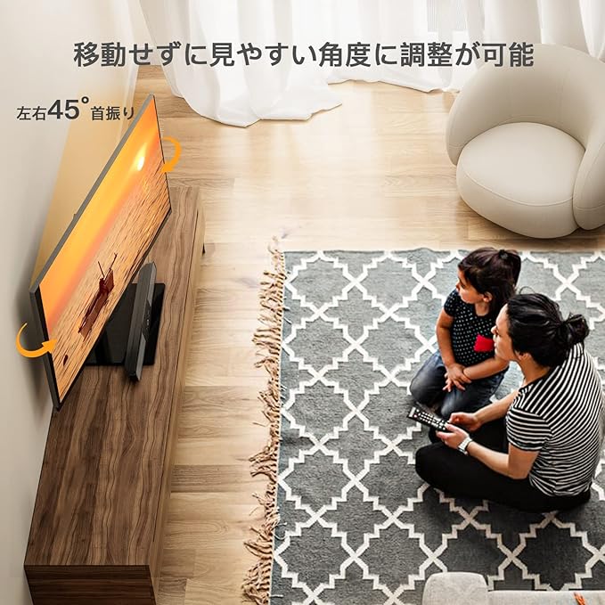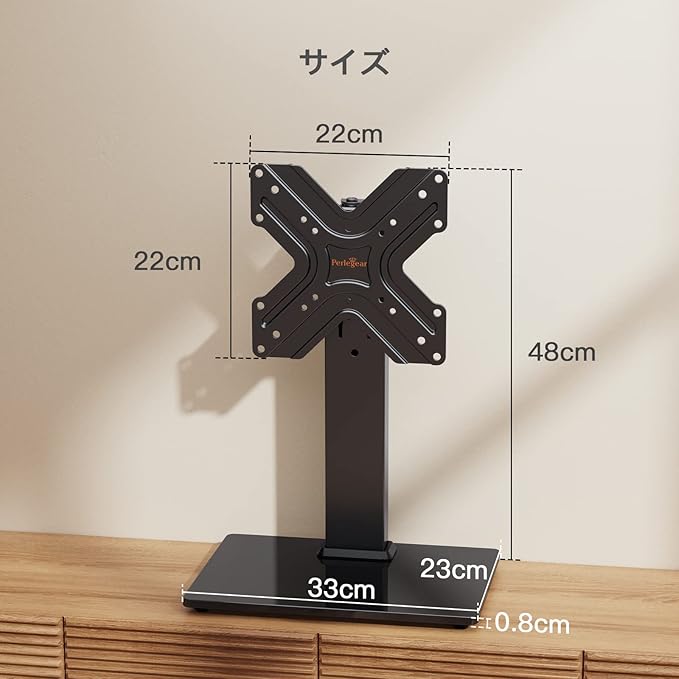 【簡単に高さ調節&左右首振り】PERLEGEAR テレビスタンド ロータイプは、取り付け部中心から台座まで、高さがそれぞれ29cm、34cm、38cmに調整できます。また、力不要でテレビの端を振りだけで左右それぞれ45 首振りが可能です。