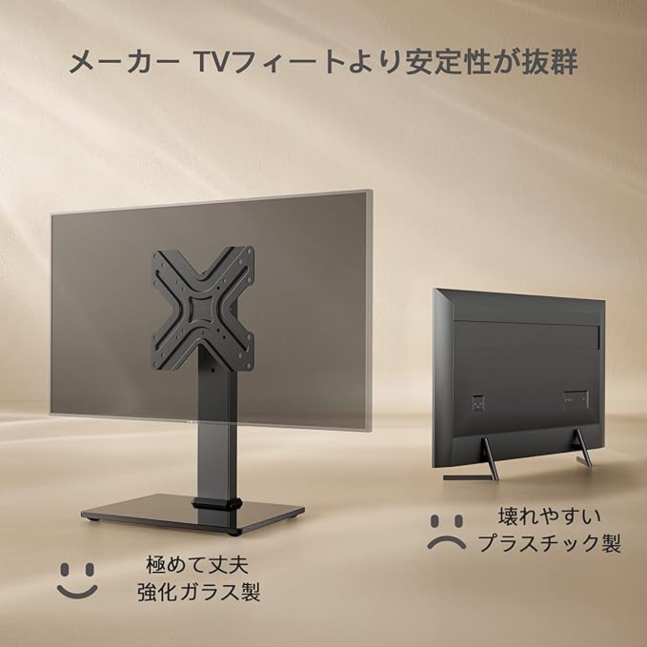 【取り付け可能なテレビ】※次の条件を同時に満たす必要があります。①対応インチ:13~50インチ以内。②対応重量:45kg以内。③対応VESA:75x75/100x100/200x100/200x200mm(100*200mmは対応しない)。④対応タイプ:平面テレビ/曲面テレビ/凹凸/段差/干渉配線があるテレビ・モニターに対応可能。※曲面テレビや凹凸・段差・干渉配線のあるテレビを設置する場合は付属のスペーサーを補助具として使用する必要があります。※商品ガイドとドキュメントページには設置マニュアルがアップロードしているので、ご参考の上ご購入ください。
