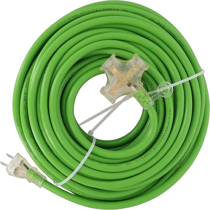 高儀(Takagi) M&M 延長コード 延長電源 電源タップ トリプルタップ 電源ケーブル 延長ケーブル 電源コード 作業用 カラー ソフトタイプ 3口 1500Wまで 125V 15A 3個口 3分配 コンセント たこあし 電工 グリーン 20m TG-COD-2003GA