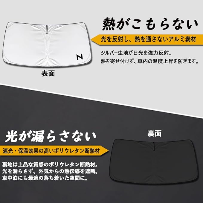 日除け:ダッシュボード シート類の劣化や革素材の日焼けの原因となる紫外線をしっかりと遮り、車内のインテリアを守ります。