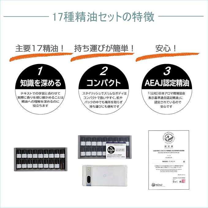 アロマ検定3点セット 1級・2級対象主要17種精油セット + AEAJ公式テキスト + AEAJ公式問題集(※第52回アロマテラピー検定より、香りテストの出題は実施されませんのでご注意ください)