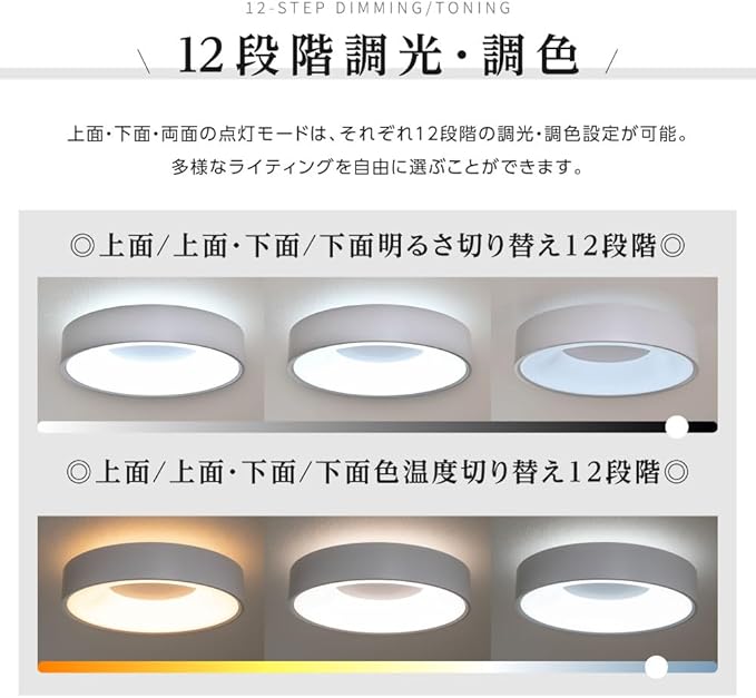 【リモコン操作・消灯タイマー】リモコン操作と消灯タイマー機能が装備されており、照明制御が簡単で便利になります。ユーザーはリモコンで12段階の色温度を簡単に切り替えることができ、さまざまな環境やシーンに適応します。リモコンは直感的で使いやすく設計されており、明るさの調整、モードの切り替え、消灯時間の設定などがワンタッチで行えます。特にタイマー機能は、設定した15分、30分、60分後に自動的に消灯するため、ユーザーにさらなる便利さを提供し、就寝前の使用に特に適しています。この照明器具は操作が簡単で、エネルギーを効果的に節約でき、実用的で環境に優しいです。※(リモコンの電池は別途購入が必要です)