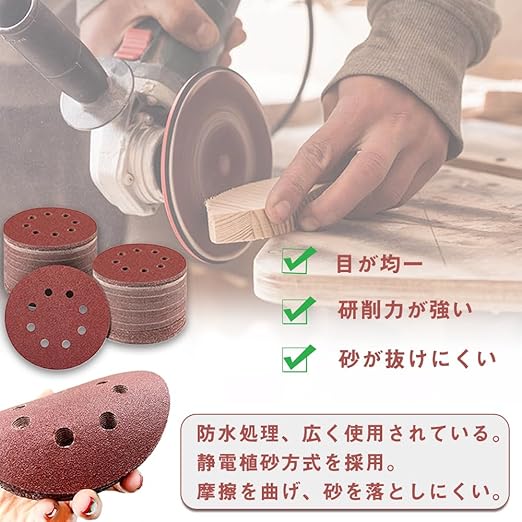 脱着が簡単です 密着性に優れ、高速で耐久性のあるサンディングを提供することで、作業時間を節約し、集塵用に8つの穴を事前に打ち抜きます 穴の位置も正確でした目詰まりしにくいです。
