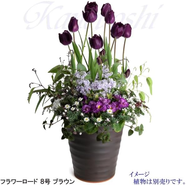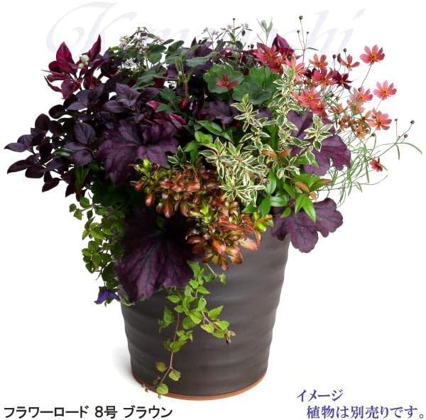 KANEYOSHI フラワーロード ブラウン 8号 植木鉢 おしゃれ 鉢 三河焼 穴付き 植木鉢 陶器 素焼き 鉢植え ブラウン 8号